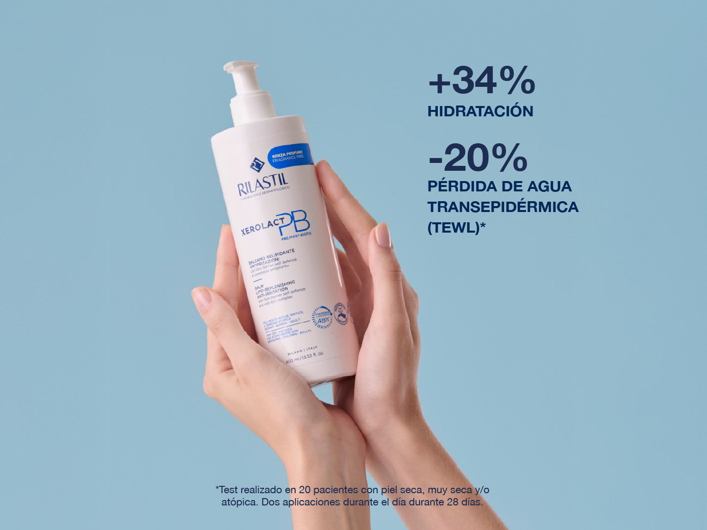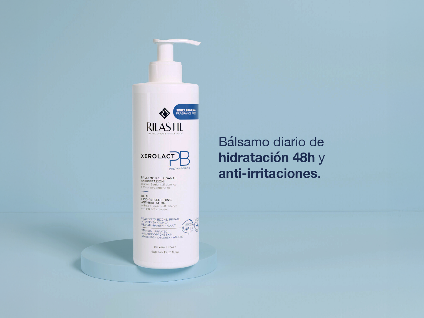 Bálsamo diario de hidratación 48h y anti-irritaciones. Alivia inmediatamente el picor, hidrata, nutre y protege, contribuyendo así a mantener el equilibrio de la microbiota de la piel. Indicado para pieles secas, frágiles y con tendencia atópica.