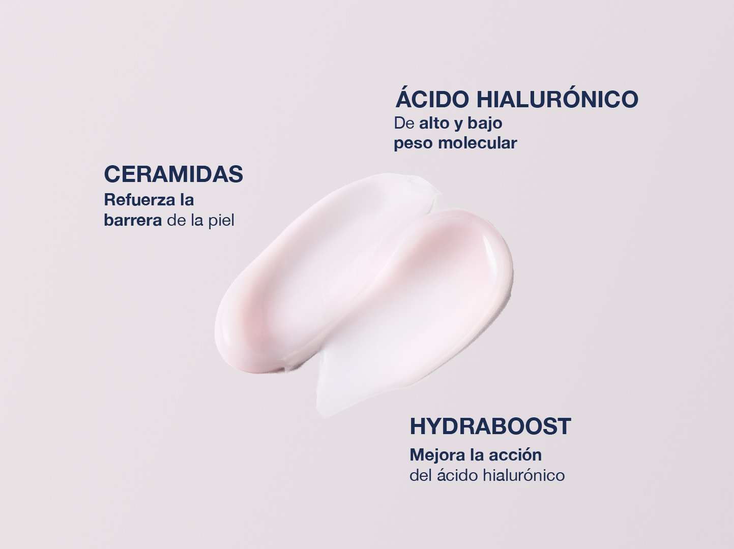 Gel-crema que garantiza una hidratación intensiva durante 72 horas. Con ácido hialurónico de alto y bajo peso molecular para una acción hidratante superficial y profunda, y ceramidas que refuerzan la barrera de la piel.