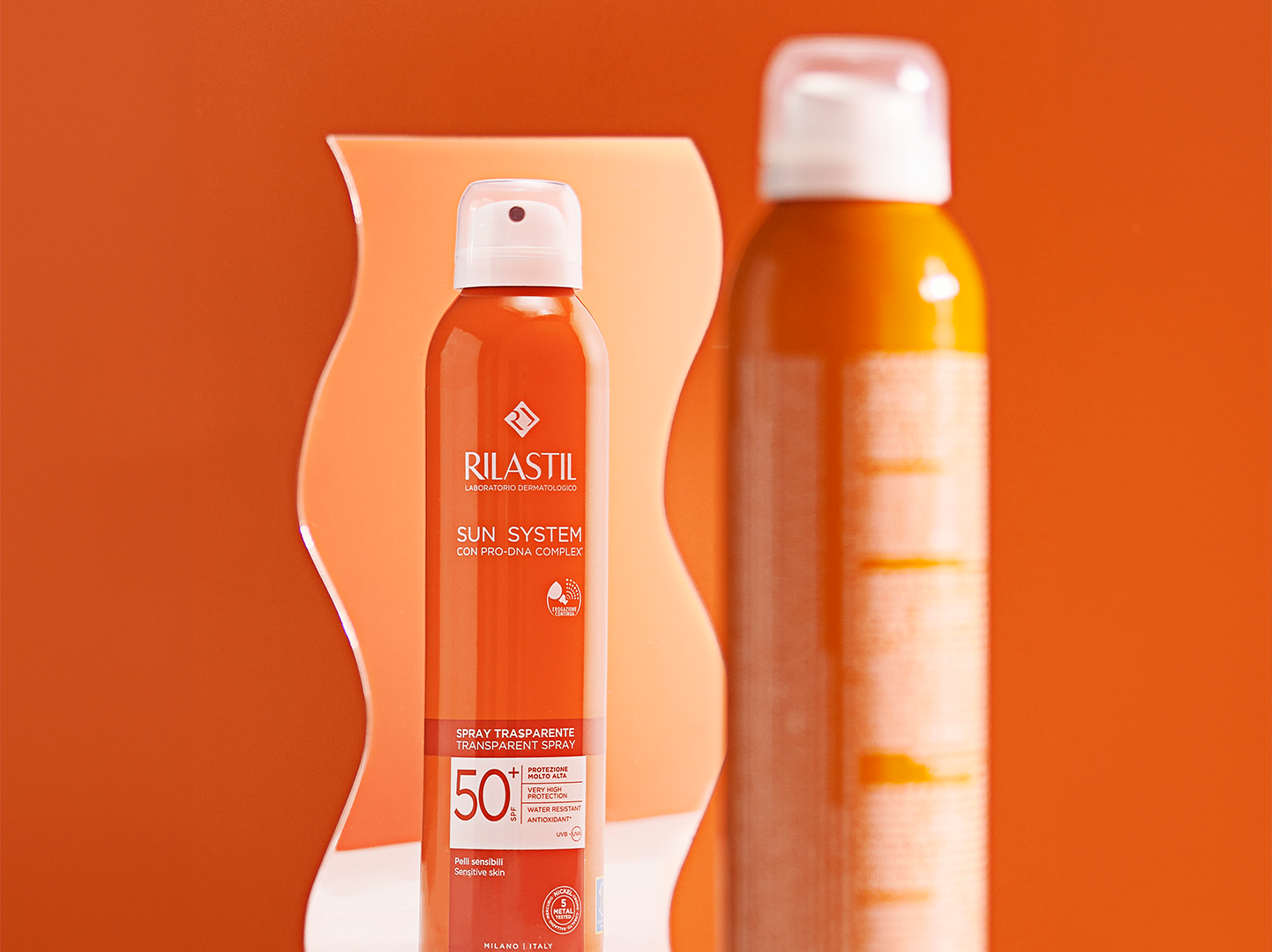 Protector solar corporal. Spray transparente con una innovadora fórmula que permite aplicar el producto incluso sobre la piel húmeda.